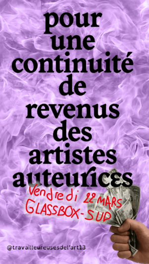 Présentation de la brochure sur l’assurance chômage des créateur·ices par le collectif travailleureuses de l'art 13, dans le contexte du projet de loi porté collectivement par le Syndicat National des Artistes Plasticien·nes de la CGT, la Buse et le Syndicat des Travailleur·euses Artistes-Auteur·ices CNT-SO ainsi que la commission culture du Parti Communiste français