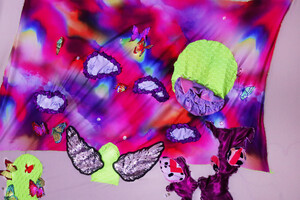 Visuel : Mauvais·e œil, détail de patchwork, 2023 dans le cadre du duo show HOT POTATOEX avec HaYoung curaté par sissi club, 2023 © Théo Eschenaueur